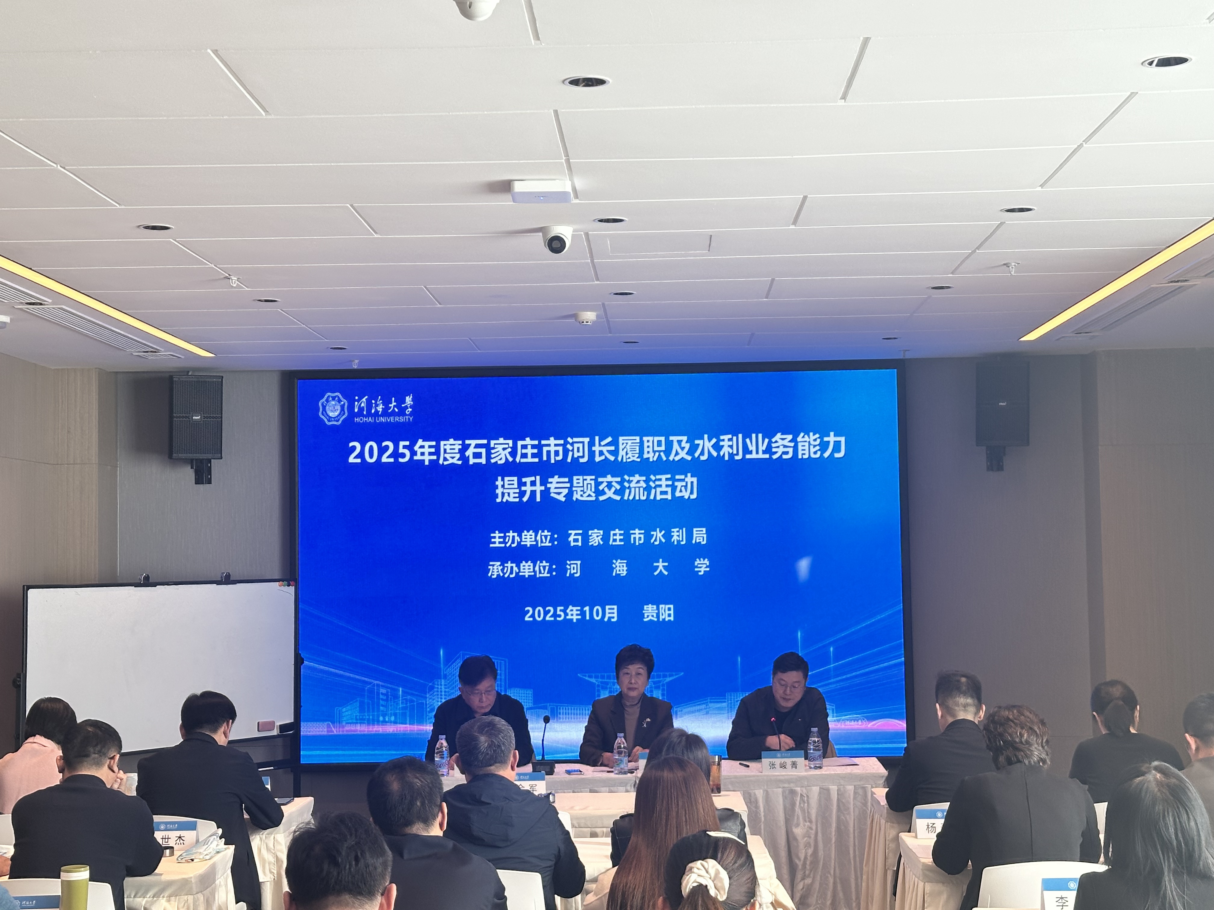 为深入学习贯彻习近平总书记关于治水的重要论述精神,进一步提升全市河长履职能力,扎实推进幸福河湖建设,10月28日,由石家庄市水利局主办、河海大学承办的“2025年度石家庄市河长履职及水利业务能力提升专题交流活动”在贵阳顺利开班。石家庄市水利局党组成员、副局长谢晓彤,河海大学贵州继续教育基地、贵州水利工程协会专职秘书长张峻菁出席开班仪式。仪式由石家庄市南水北调工程建设中心二级调研员李会军主持。