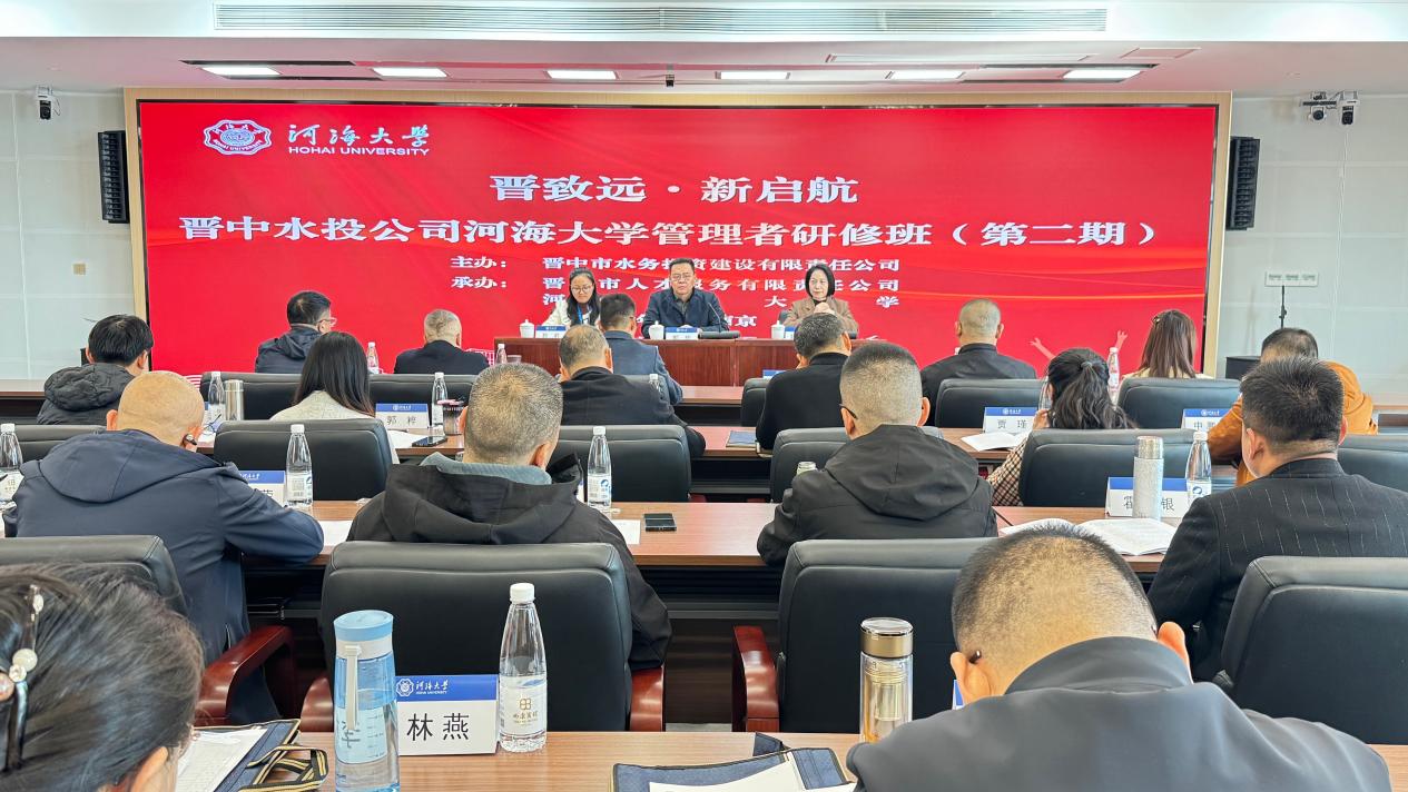 11月11日上午,“晋致远·新启航——晋中水投公司河海大学管理者研修班(第二期)”在我校顺利开班。晋中市水务投资建设有限责任公司党委委员、副总经理郭华,河海大学终身教育学院副院长姚文贤出席开班仪式。