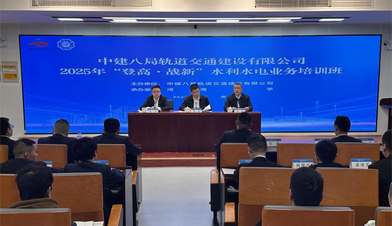 为推动国家水利事业高质量发展,助力企业转型升级与人才队伍建设,11月24日上午,中建八局轨道交通建设有限公司2025年“登高·战新”水利水电业务培训班在我校顺利开班。中建八局轨道公司党委副书记、纪委书记、工会主席谢彬,河海大学终身教育学院党总支书记、院长朱亚出席开班仪式。仪式由中建八局轨道公司人力资源部经理海洋主持。
