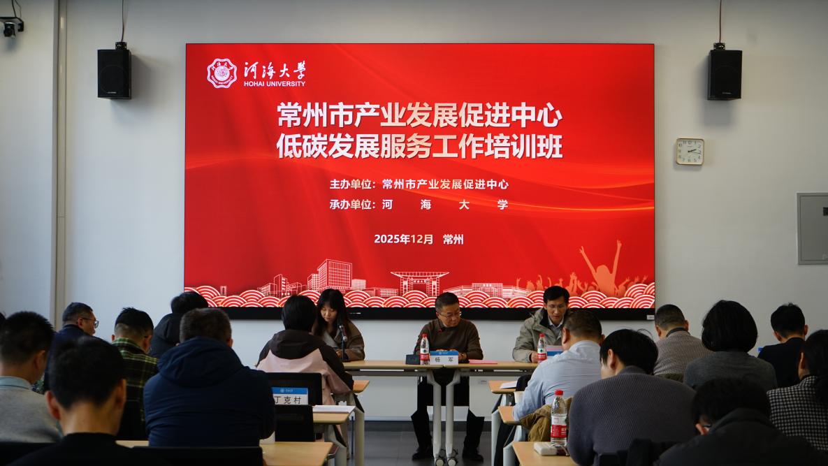 2025年12月16日下午,常州市产业发展促进中心低碳发展服务工作培训班在我校常州校区正式开班。常州市工业和信息化局副局长杨军、河海大学终身教育学院副院长于伟出席开班仪式,全市工信系统及产业发展促进条线的52名干部参加培训。