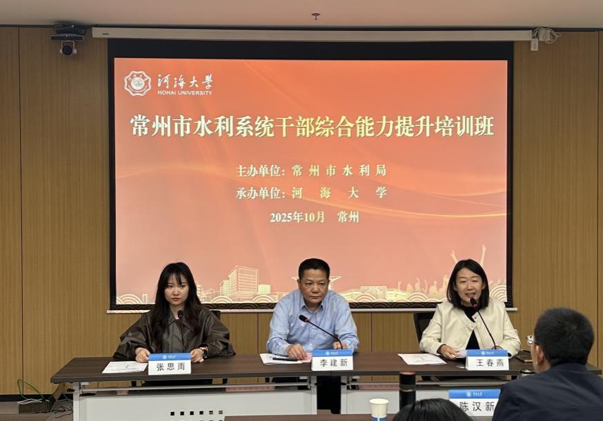 10月27日,常州市水利系统干部综合能力提升培训班在我校顺利开班。常州市水利局副局长李建新、河海大学终身教育学院培训管理部主任王春燕出席开班仪式。仪式由终身教育学院区域教育培训中心张思雨主持。