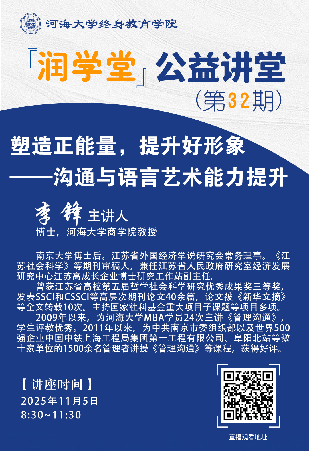 【润学堂】公益讲堂第三十二期:塑造正能量,提升好形象——沟通与语言艺术能力提升